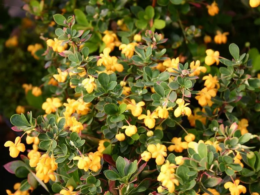 Барбарис – это листопадный кустарник. Растения имеют кожистые листочки, которые растут в виде пучков. Кустарник имеет достаточно мощные колючки, которыми можно легко пораниться. Интересно, что колючки барбариса – это видоизмененные листья. Образовались они после того, когда от последних осталась лишь одна средняя жилка. Цветы растения имеют мелкий размер, но весьма приятный запах. Их цветовая гамма разнообразная – желто-золотистая, оранжевая или красная. Располагаются цветки кисточками, однако иногда встречаются и одиночные соцветия.