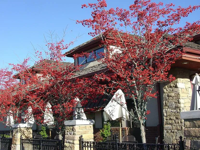 - боярышник сливолистный (crataegusprunifolia) покрыт густой темно-зеленой крупной листвой эллипсовидной формы;