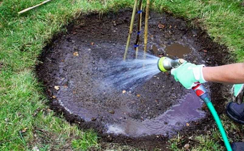 Посадочную яму выкапывают в 2 раза больше корневой системы. Алгоритм посадки: