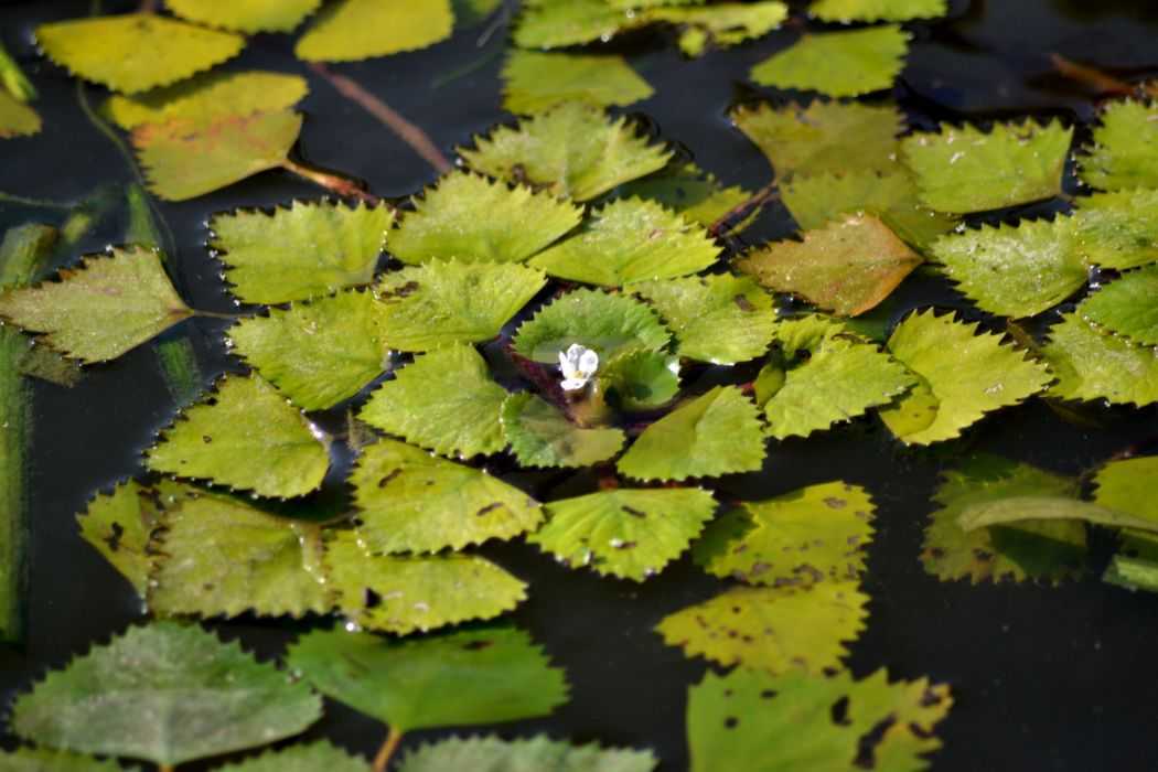 Стебель растения имеет 2 вида листьев. Линейные листки, расположенные друг напротив друга, формируются на стебле, находящемся под водой. Второй вид листьев напоминает многоярусную розетку, расположенную на поверхности воды. Гладкие листки в форме овала или ромба имеют зубья по краям и напоминают березовые листья.