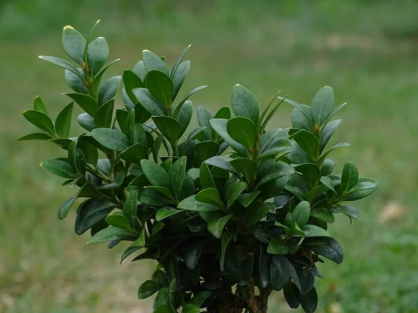 Самшит вечнозеленый – обладатель темно-зеленой глянцевой листвы до 3 см в длину. Чаще это дерево, кустарники встречаются редко. Популярные сорта: