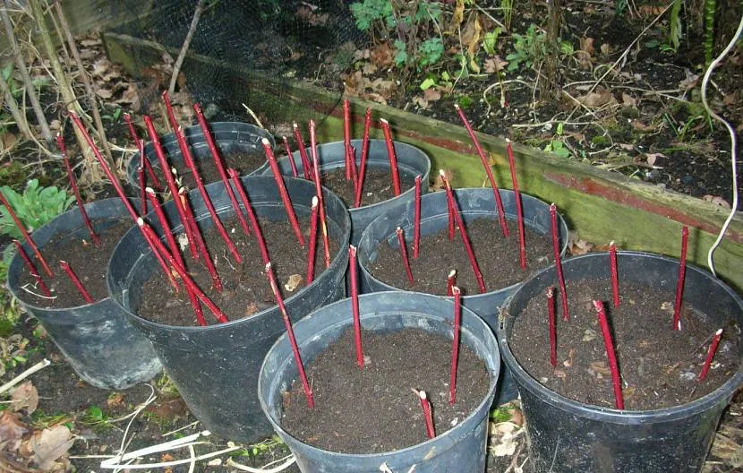 Древесные черенки можно также заготавливать поздней осенью и всю зиму хранить в холодильнике в закрытом пакете с влажным песком. Весной технология укоренения такая же, как описана выше.