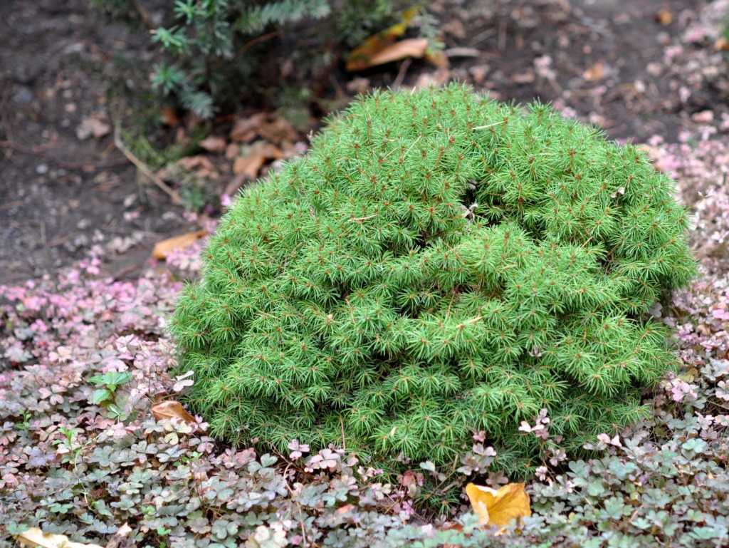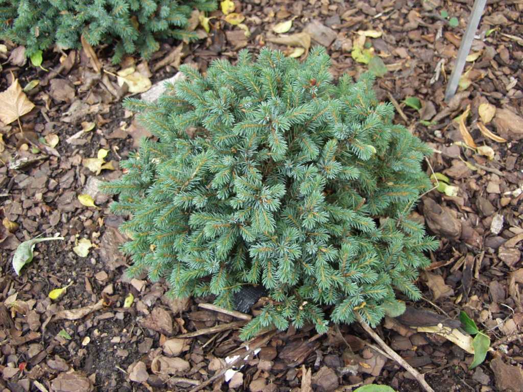 - Picea glauca conica Gnom. Низкорослая форма с серо-зеленой хвоей и узкопирамидальной кроной, вырастает чуть выше метра.