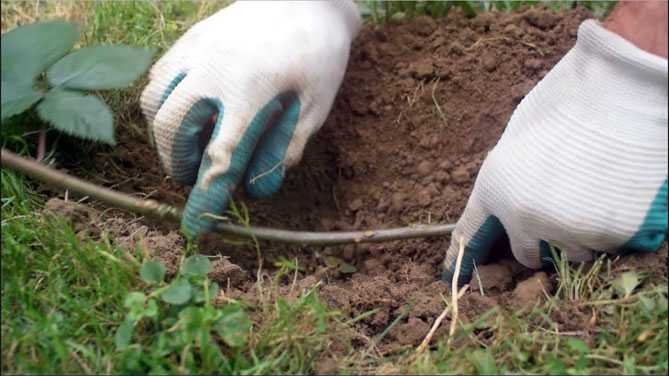 - Укоренение побегов, без их отделения от маточного куста. Такой метод проводится путём пригибания молодого однолетнего стебля к земле и прижимания его к почве специальными скобами. Побег наклоняют в предварительно вырытую траншею, глубина которой составляет 15–20 см. Осуществляют такое укоренение в августе. На протяжении 30–50 дней ветка пустит молодые побеги, на которых уже будут образованы корни. Проводить пересадку таких саженцев на постоянный участок необходимо ранней весной.