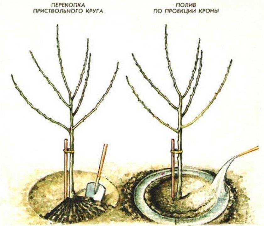 После проведения посадочных работ молодые саженцы следует полить обильно водой. Под каждое дерево рекомендуется внести до 3 вёдер воды. Дальнейший уход немаловажен для получения в будущем стабильных урожаев.