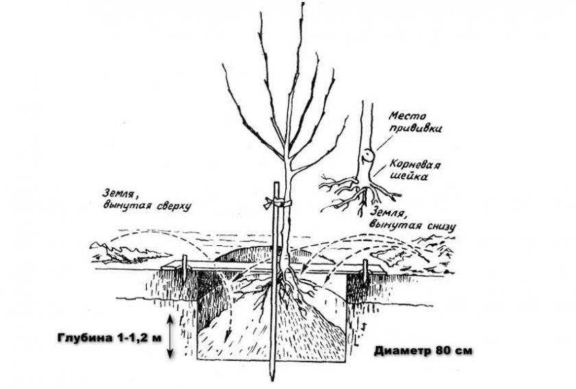 - Заранее готовят посадочную яму глубиной до 70 см и шириной до метра (при весенней посадке — с осени).