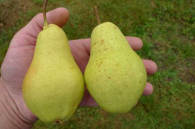 Груша Московская относится к ранним осенним сортам – собирают урожай с этих деревьев с первых чисел сентября до последних чисел октября. Одним из достоинств сорта является примерно одинаковый размер созревающих груш и одинаковый вес – около 115-125 г. При хорошем уходе многие плоды могут достигать массу 2110-220 г. Но форма их – не слишком аккуратная, широкогрушевидная.