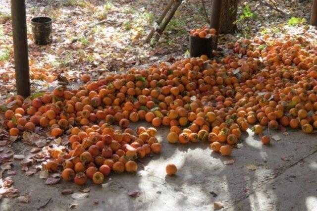 К моменту сбора плодов дерево сбрасывает лиственный покров. От наличия на фруктах царапин, вмятин и других повреждений напрямую зависит то, как долго будет храниться хурма. Аккуратно обхватив плод рукой, его прокручивают на плодоножке.