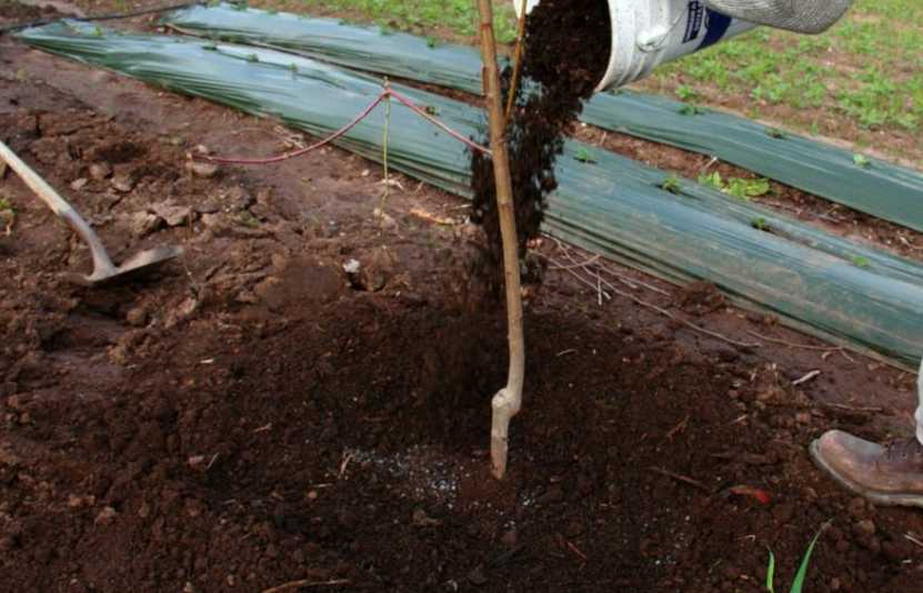 - Верхний слой земли, который был извлечен из ямы, смешивается с перепревшим органическим компостом и речным песком в такой пропорции – 3:1:1.