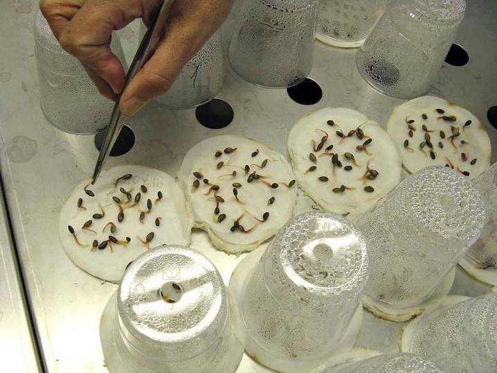 Это не только поможет семенам более активно прорастать, но и укрепит иммунитет будущих растений, что также немаловажно. В раствор семена следует поместить на 20-30 часов, после чего они помещаются на плотную увлажненную материю и укрываются. Процесс проращивания займет около месяца