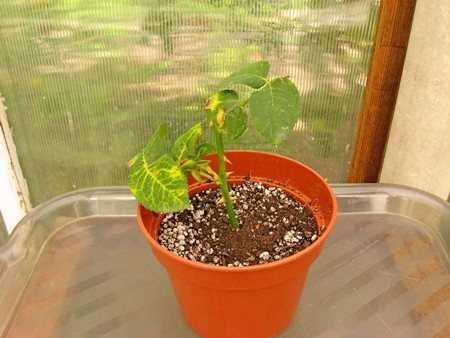 Укорененные черенки роз пересаживают в горшочки диаметром 9 — 11 см.