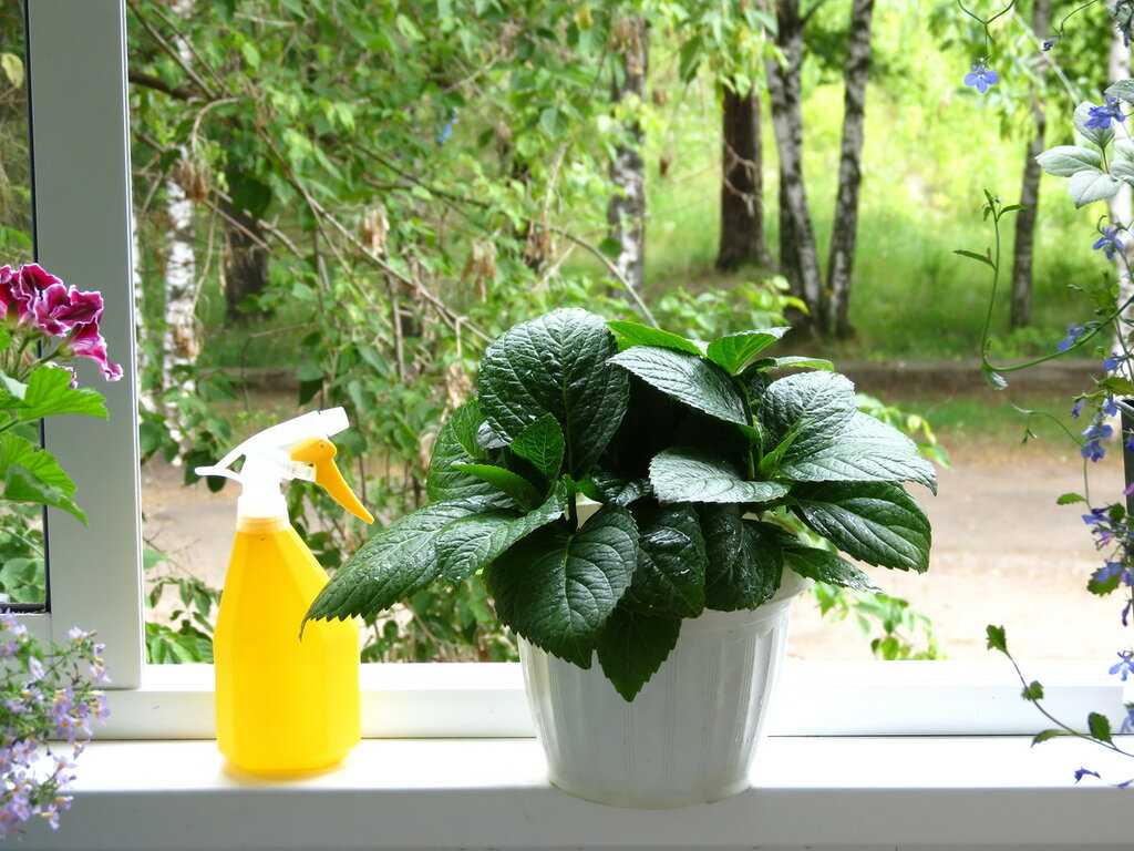 Привыкшая к морскому климату, гортензия будет благодарна за регулярное опрыскивание, так как влажность она любит. Особенно часто и обильно опрыскивать цветок следует в том случае, если он находится недалеко от отопительных приборов, пересушивающих воздух (к слову, для гортензии это крайне нежелательно).