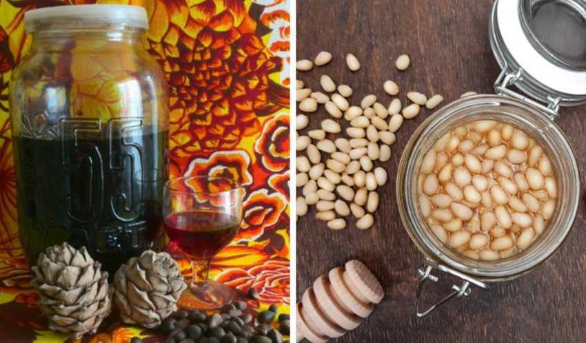 Весьма популярна, особенно среди жителей Сибири и Урала, настойка на основе кедрового семени. Для её приготовления 100 г орехов вместе со скорлупой измельчают и заливают спиртом. Настаивают в тёмном месте на протяжении 30 дней и принимают по 10–15 капель ежедневно.