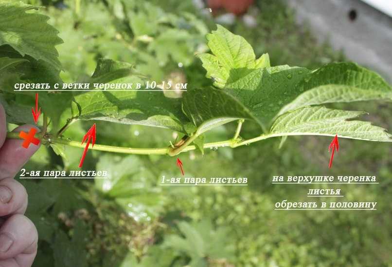 В июне — начале июля пора заготовки зеленых черенков, чтобы они сохраняли гибкость. Нарезать нужно так, чтобы на каждом было не менее 3 узлов, длина черенка около 10 см. По низу идет косой срез и обрезаются листья.
