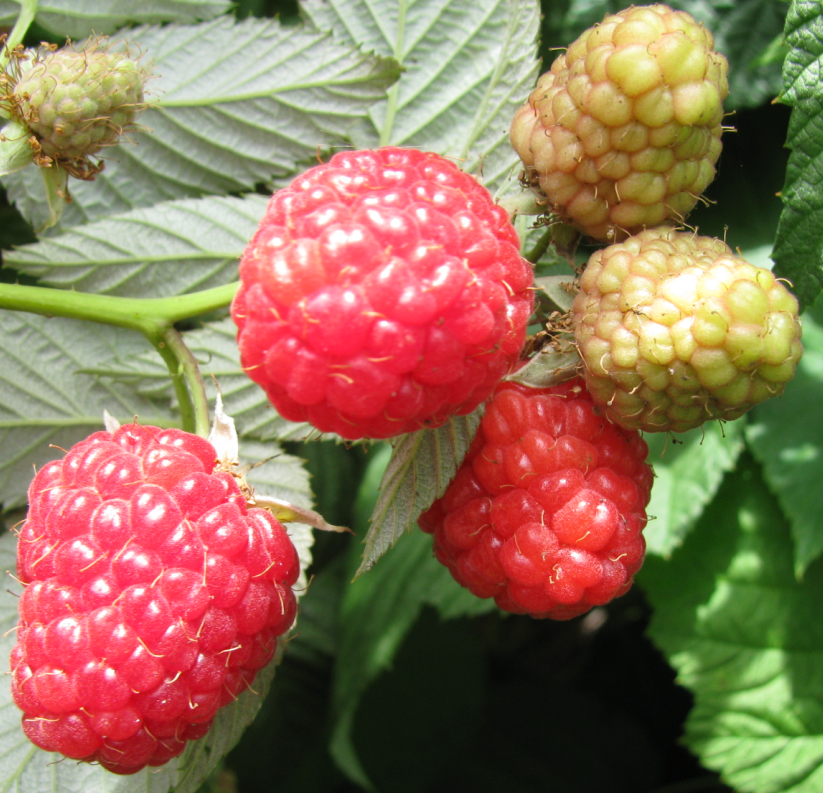 Ягоды 1. Плоды малины — мелкие костянки. Несколько их десятков срастается в единую ягоду.