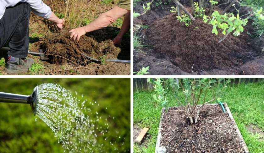 Кустарник вместе с земляным комом переносят и размещают в новой посадочной яме, присыпают почвенным составом. Посадку нужно обильно полить (8–10 л) и мульчировать.