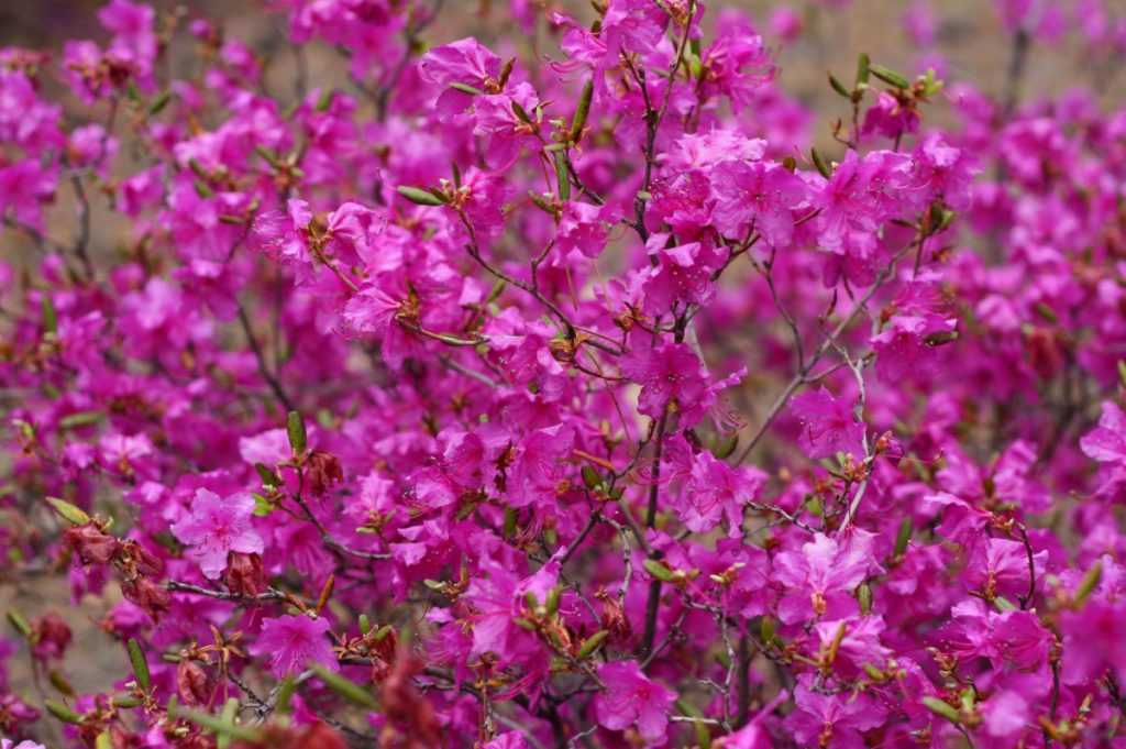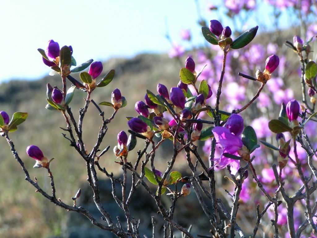 Рододендрон Даурский – листопадный морозоустойчивый сорт, способный выживать в условиях Сибири, Дальнего Востока и Урала. Соцветия состоят из крупных одиночных цветоносов желтого цвета, собранных в кисти. Цветение в мае.