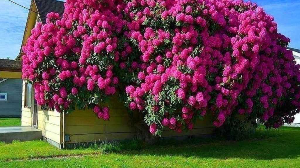 Рододендрон гибридный Альфреда – декоративный невысокий вид, цветы которого диаметром в 6 см собраны в пучки по 20 штук в каждом. Когда происходит цветение листьев практически не видно.