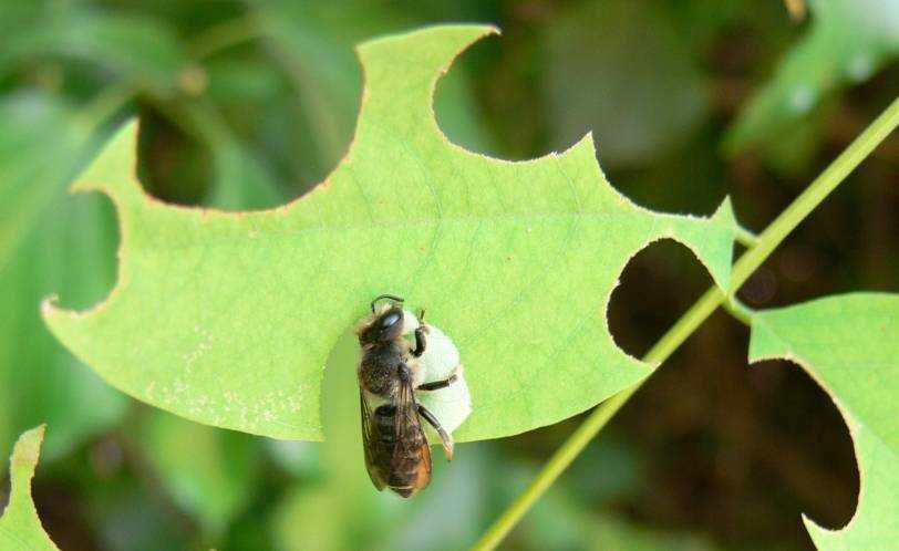 Факт того, что цветы поражает данное насекомое, можно определить сразу. Она портит растение так, что на листьях остаются идеально ровные овальные или округлые отверстия. Причем насекомое не съедает листья, а строит из них свои жилища. Диаметр вырезанного отверстия точно равен необходимому для строительства сегменту. Таких кусочков ей может потребоваться более 1000. От пчелы-листореза ущерб для розы минимален. Она ничего не портит, не есть цветы и не высасывает клеточный сок, но листья все же теряют свою декоративность. Можно либо установить сетку, либо опрыскать средствами для борьбы с пчелами. Никакой необходимости в инсектицидах, которые сказываются еще и на здоровье самого цветка, нет.