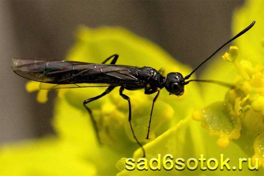 У обыкновенного хлебного пилильщика удлиненное черное тело до 8–10 мм, у другой разновидности – черного хлебного пилильщика до 7–9 мм.