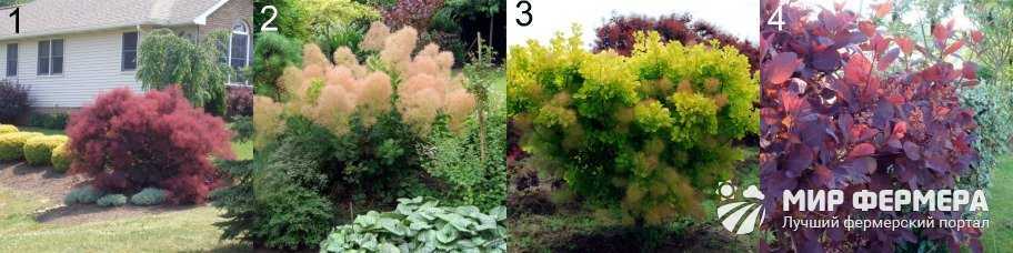 Рисунок 2. Лучшие сорта скумпии: 1 — Ред Перпл, 2 — Янг Леди, 3 — Голден Спирит, 4 — Грейс