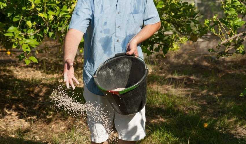 В период плодоношения дерево удобряют фосфорно-калийной смесью, вносят также в приствольный круг на каждый метр: