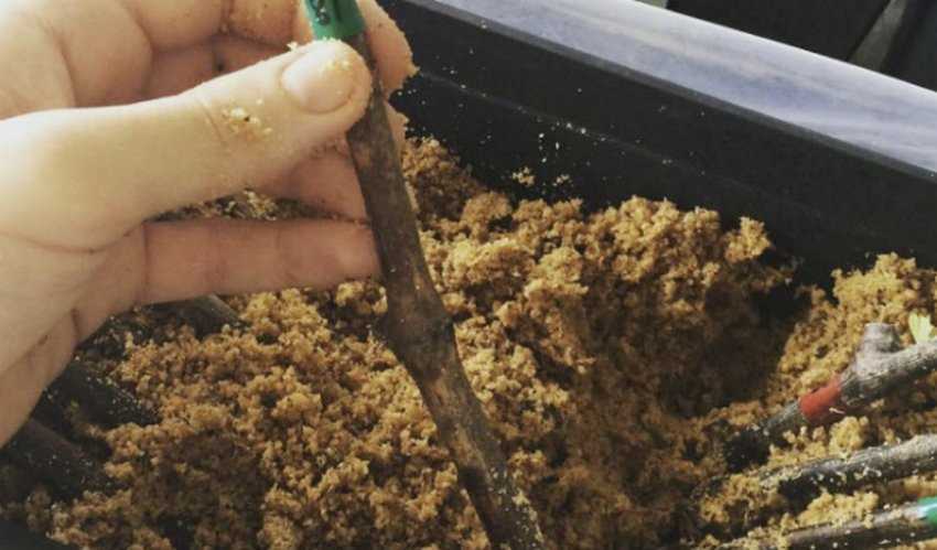 Лучшие условия для эффективного укоренения заготовленного посадочного материала — тепличные, поэтому после выдержки черенков в стимуляторе корнеобразования, их помещают в ёмкость с влажным торфяно-песчаным субстратом (1:1), углубляя под углом в 45 градусов на расстоянии 6–7 см друг от друга. Сверху отрезки укрывают полиэтиленовым пакетом или перевёрнутой стеклянной банкой, а затем переносят в хорошо освещённое место. В течение последующих недель необходимо регулярно проветривать и поливать саженцы, а как только они укоренятся (примерно через месяц) — смело снимайте укрытие и продолжайте привычный уход.