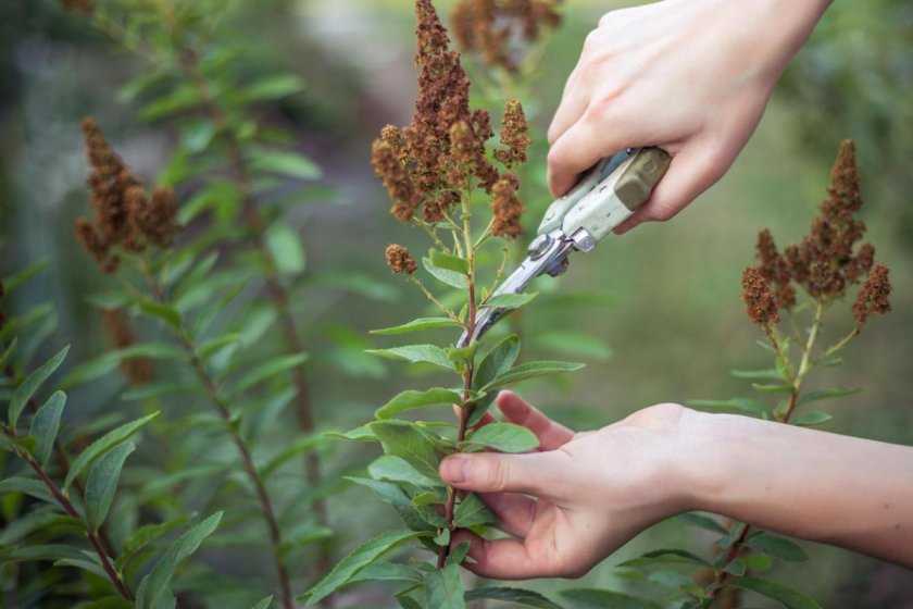 Регулярное проведение санитарной обрезки, в процессе которой необходимо удалять все сухие побеги и соцветия, а также деформированные ветки, поможет придать кусту красивый и привлекательный внешний вид.