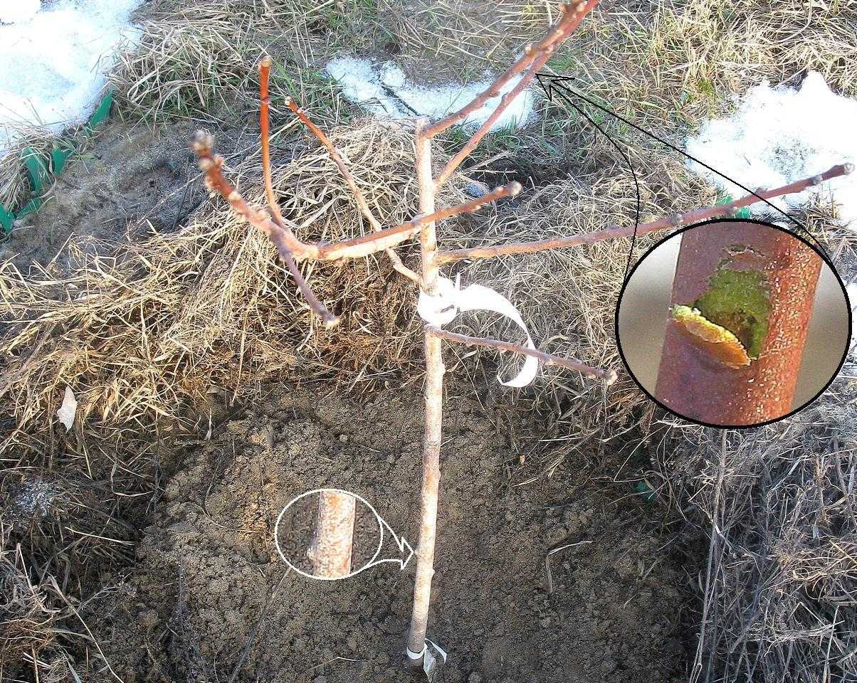 Прямой корень не подходит, так как дерево не сможет полноценно питаться. Не должно быть повреждений или подгнивших участков. Осматривают место привоя: ствол должен быть гладким, без застывшего сока на коре. Выбирают однолетние саженцы – они лучше приживаются и привыкают к климату.