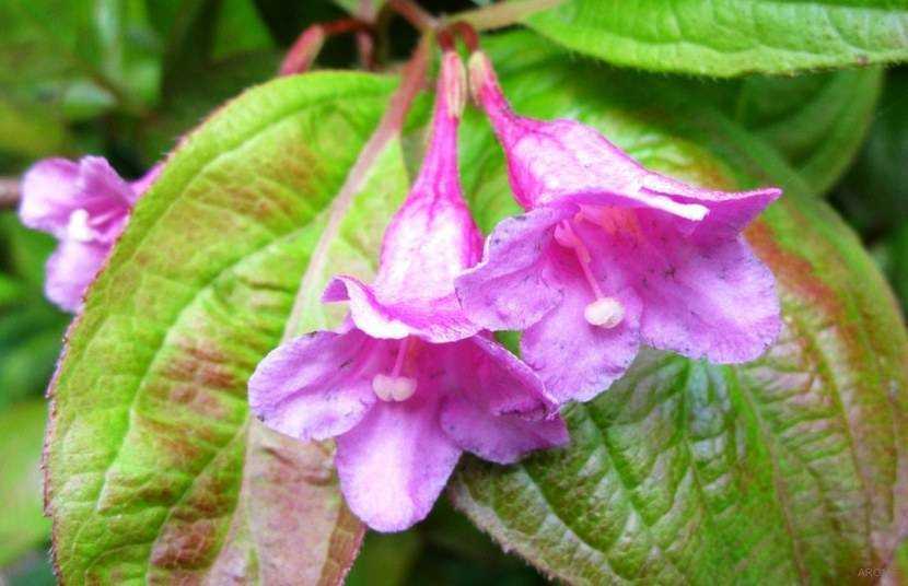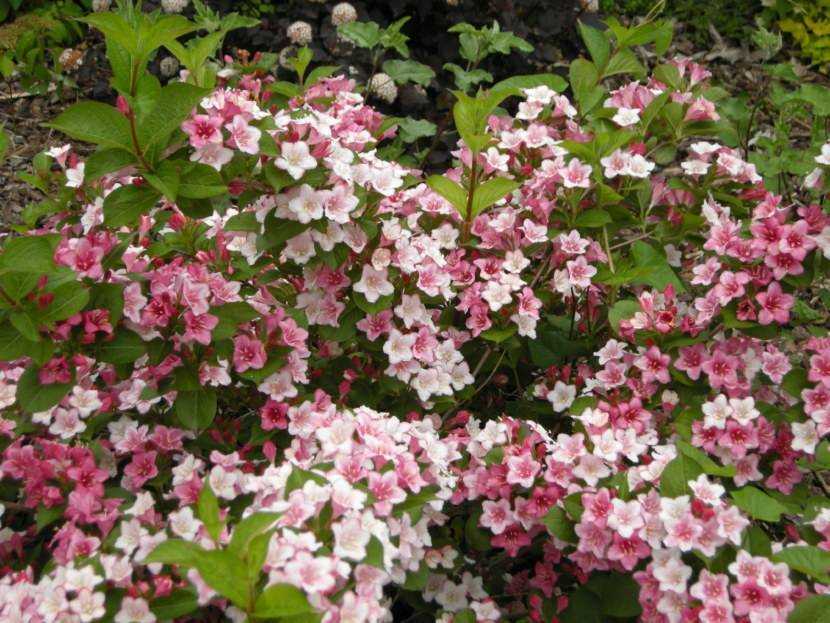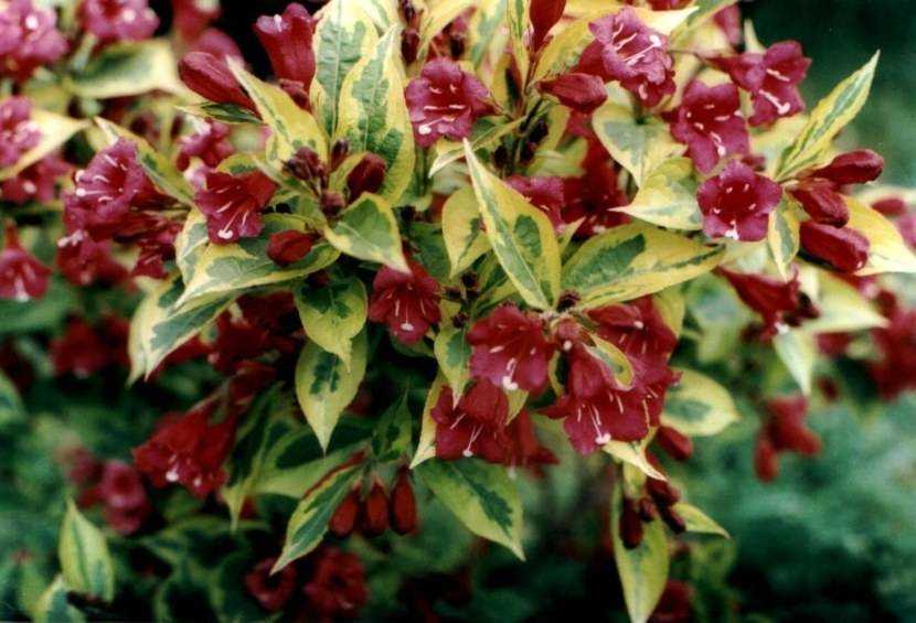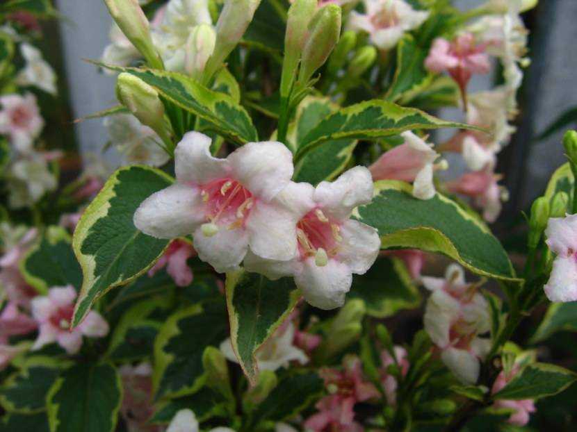 По красоте цветения заслуженно выделяют пестролистную вейгелу.