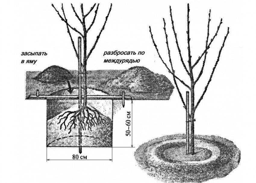 При их выборе лучше останавливать свое внимание на однолетних саженцах, которые имеют прививки. В лунку помещают посадочный материал так, чтобы прикорневая шейка находилась над поверхностью земли. Все тщательно присыпают землей и поливают 20 л жидкости по схеме посадки 3—4 м