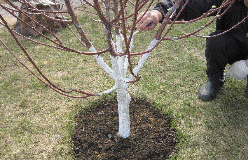 Чтобы отодвинуть начало цветения и уберечь бутоны от заморозков, следует в начале весны, до таяния снега, собрать его в сугробы вокруг стволов.