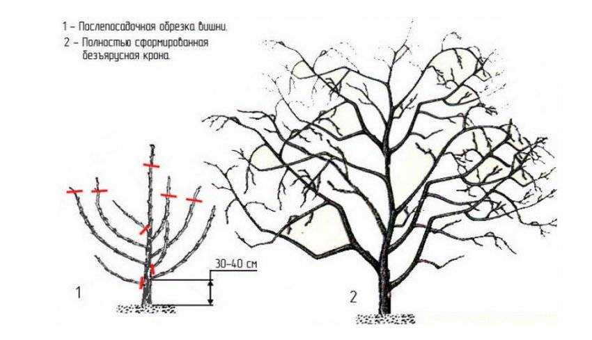 Как и любой другой сорт, Десертная вишня требует периодической обрезки. Ранней весной с дерева удаляют все подмерзшие, засохшие, поврежденные и оголенные ветви. При сильно загущенной кроне проводят ее прореживание.
