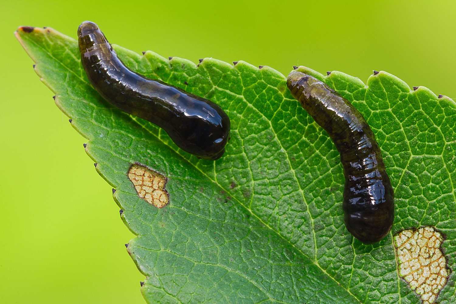 Тканями листьев вишни питаются личинки пилильщика – небольшого насекомого с прозрачными крыльями, длиной около 5 мм. Его личинки гораздо крупнее – около 10 мм в длину. Их зеленоватое тельце с утолщенной головкой густо покрывает черная слизь. На каждом вишневом листочке может «пастись» сразу несколько вредителей.