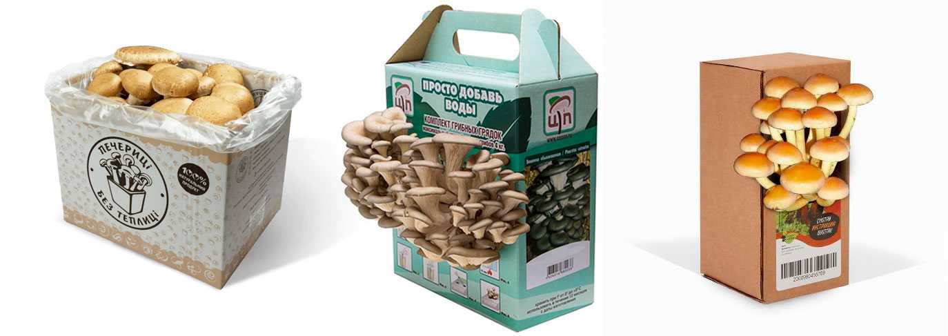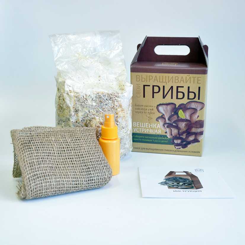 Наборы включают в себя субстрат и специальный состав, безопасный и экологичный, для проращивания грибов в домашних условиях.