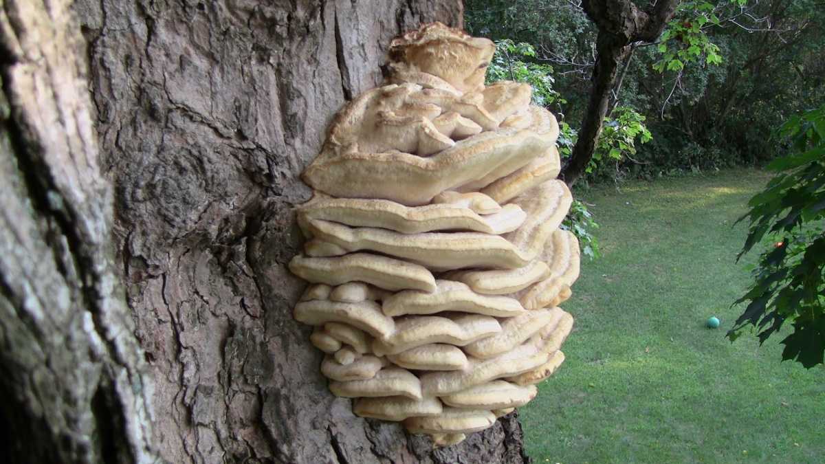 Внимание! У серно-желтого трутовика нет ножки — шляпки развиваются непосредственно от стволов деревьев.
