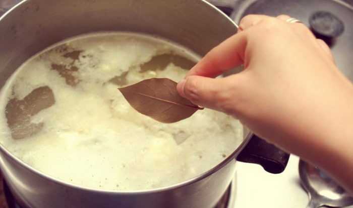 - Готовим маринад: пряности, сыпучие ингредиенты и измолоченный чеснок отправляем в кипящую воду, варим 5 минуток.