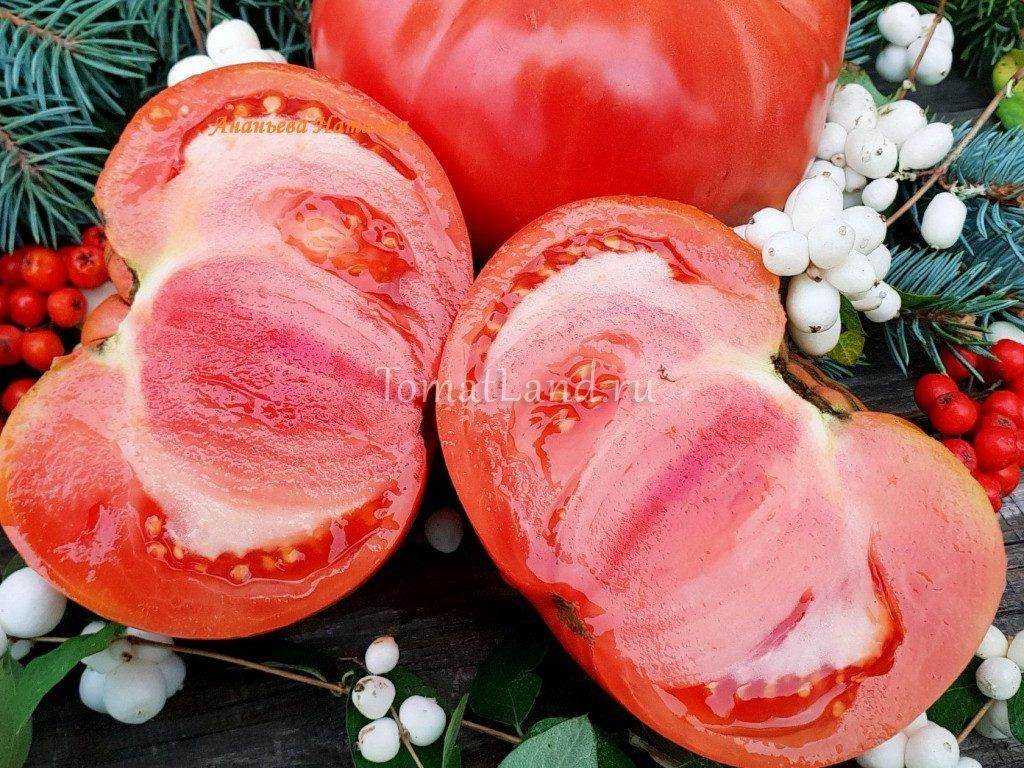 Среднеспелый индетерминантный сорт для открытого грунта и теплиц. Подходит для салатов, консервирования, переработки на томатопродукты. | Сердцевидно-вытянутый с носиком, ребристый, малиново-розовый, 200-250 г (до 400 г). Вкус хороший и отличный. |