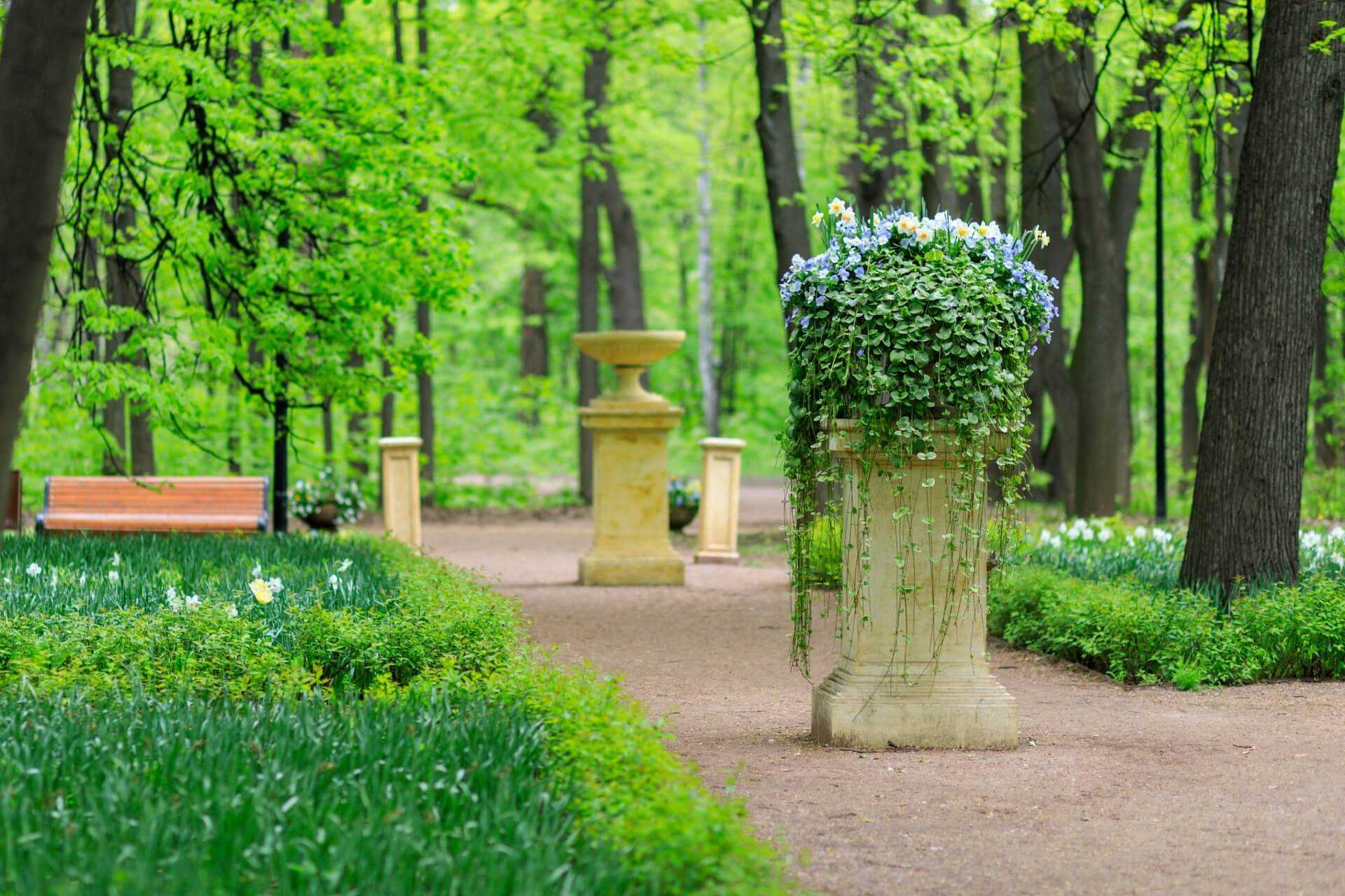 Он собрал в себе достопримечательности нескольких эпох. Гуляя по лесному массиву, где прохладно даже в летний зной, вы повстречаете Александрийский дворец, возведенный в середине XVIII столетия, домик графа Орлова 1796 года, белоснежную ротонду, построенную к 800-летию города, минералогический музей, мосты и павильон Грот.