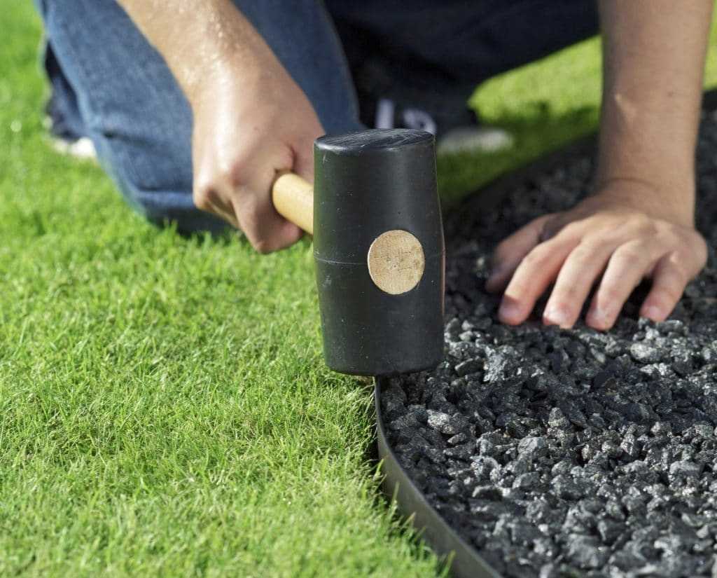 Многие производители элементов ограждения снабжают свои изделия инструкцией по применению. Если таковой нет, не беда. Для правильного функционирования окантовки ее нужно выложить по периметру внутри траншеи после закрепления геотекстиля. Для крепления окантовки необходимо воспользоваться бруском и молотком и забить ее в землю через агроткань. Во время забивания брусков нужно обязательно следить, чтобы они шли ровно, при этом не опираясь на стенки траншеи. Нельзя забивать окантовку, воздействуя непосредственно на стальной элемент. Это может повредить антикоррозийное покрытие и снизить срок службы гравийной дорожки на даче. После того как весь периметр будет окантован, необходимо по его внешнему краю сделать засыпку. Для этого понадобится достаточное количество гравия. Но при этом должно оставаться 1,2 см от верха окантовки. Засыпанный гравий необходимо разровнять граблями, чтобы агроткань была полностью накрыта и не выглядывала. После проведенной работы любой участок дачи или сада станет доступным и благоустроенным.