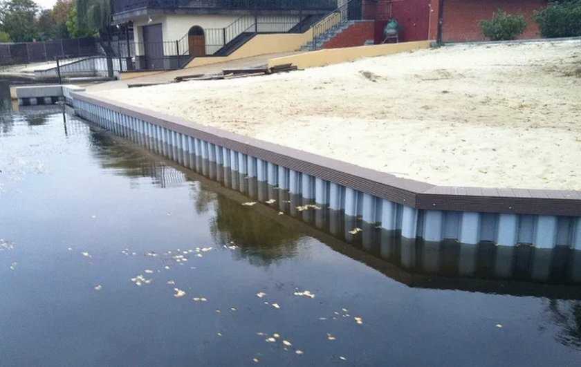 - Для крутых берегов используется укрепление с помощью пластмассовых, металлических или бетонных свай.