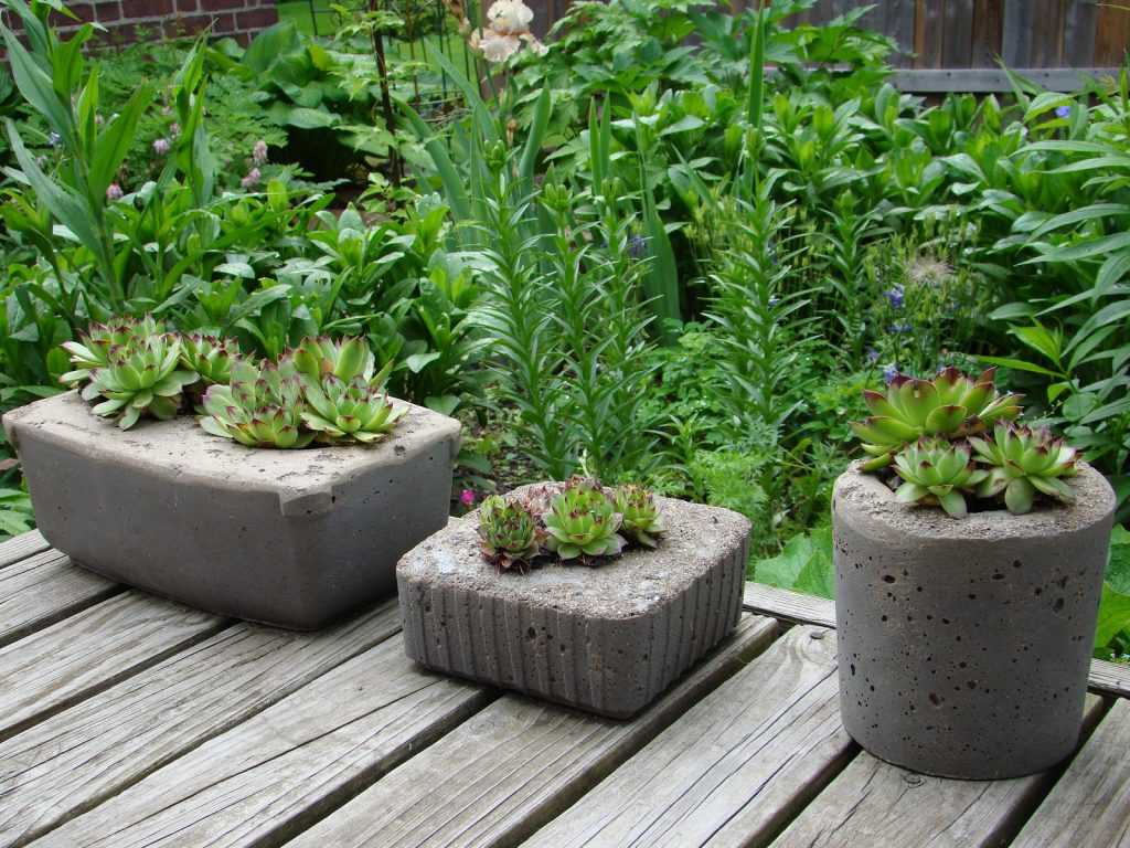 После достаньте ведро, внутрь бетонного горшка засыпьте землю и посадите цветок. Идеи таких горшков из цемента можно увидеть на фото ниже.