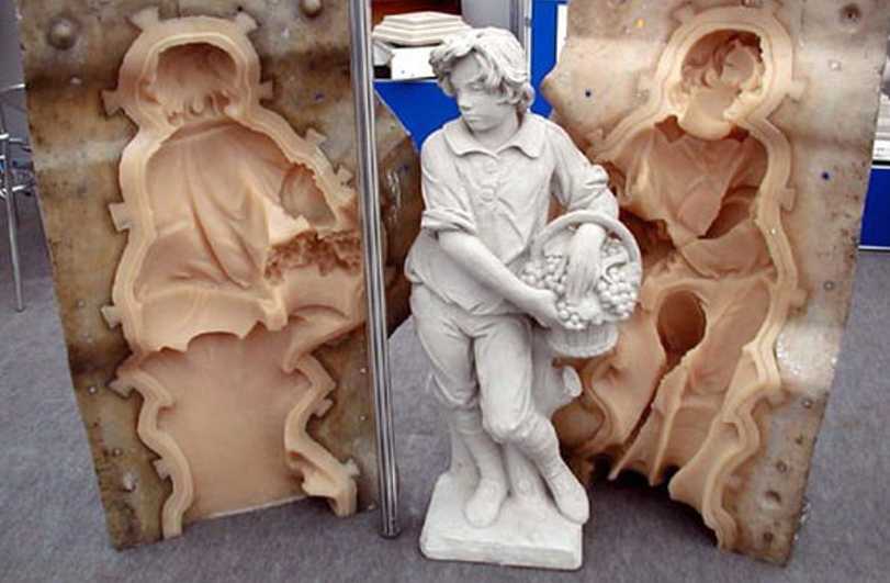 - Формовочный способ. Для изготовления фигурки подбирается форма, куда заливается бетон. После застывания бетона, форма снимается или разрезается, полученное изделие при необходимости шлифуется и красится.