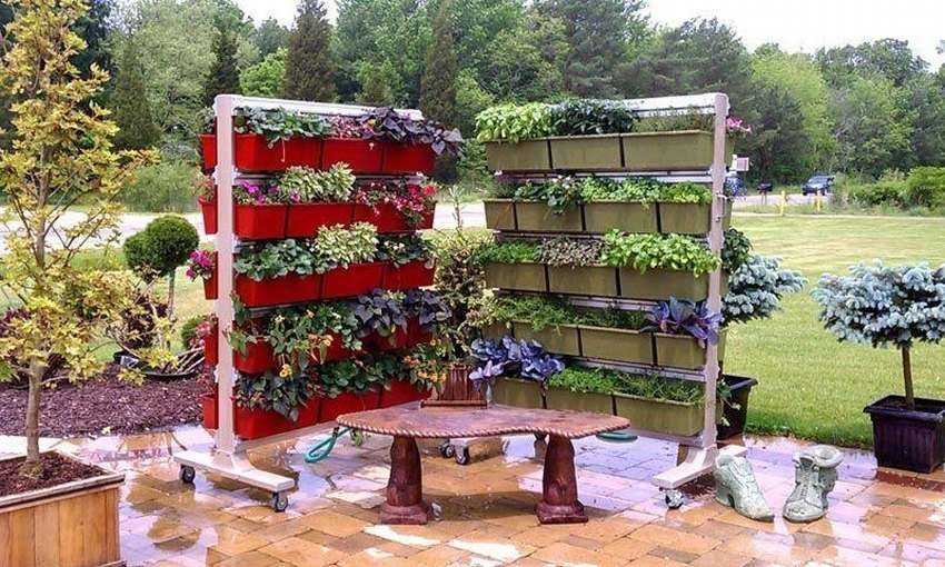 Кроме чисто технического удобства вертикальные грядки могут быть украшением вашего участка.