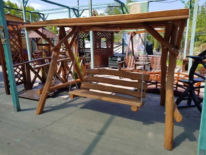 Обязательный атрибут дачи – качели – также можно выпилить из дерева. Делают из него и декоративные мельницы, колодцы, мостики. Украшением сада считаются деревянные резные беседки и лавки.