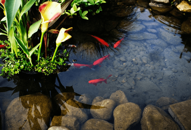 Для украшения участка обустраивают пруд с декоративными рыбами