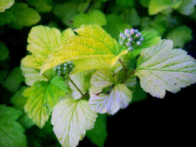 Помимо традиционной зеленой расцветки листья пузыреплодника могут быть окрашены в самые разнообразные тона: