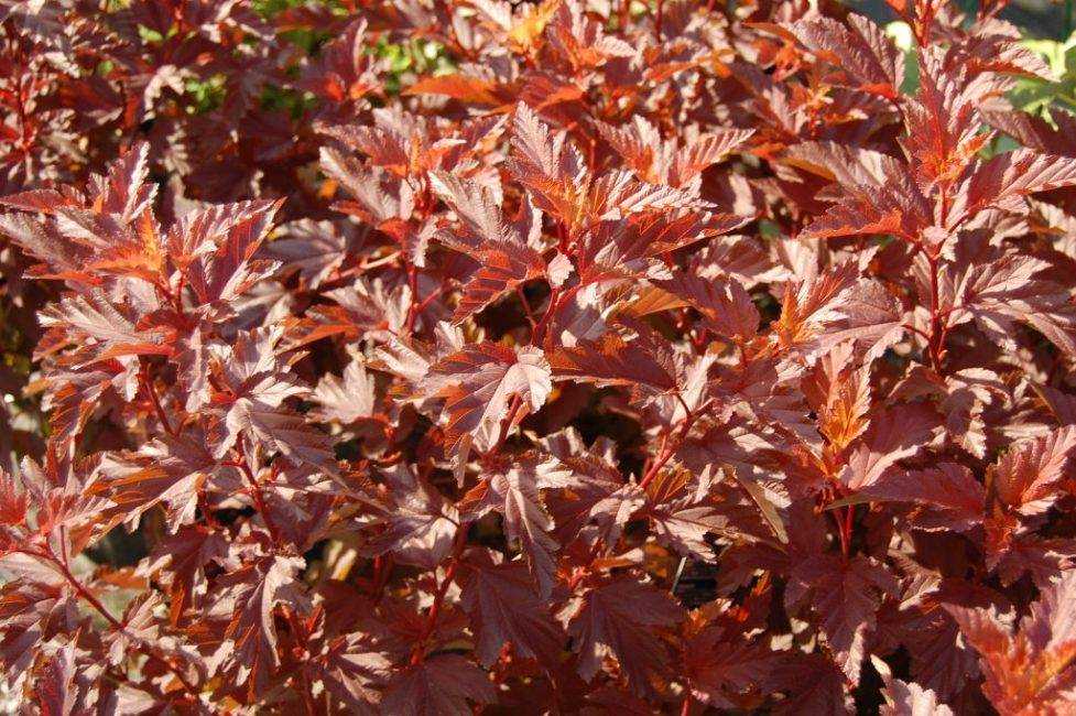 «Diabolo» вырастает до 3 метров в высоту. Этот сорт совсем неприхотлив, нетребователен к почвам и морозоустойчив. Листья могут быть надрезаны на 3-5 лопастей, насыщенного пурпурно-красного цвета. Если кустарник будет расти в тени, то его листва приобретет зеленый оттенок. Хорошо подходит для солитерных и групповых посадок.