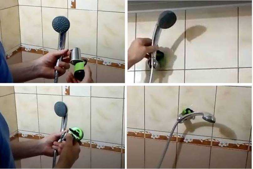 Те, кто не желает «портить» плитку на стенах сверлением отверстий, могут использовать настенный держатель для душа на присоске. Его можно фиксировать в любом месте на гладкой поверхности кафеля.