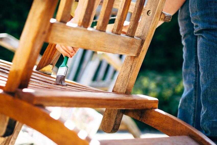 Если окрасить садовую деревянную мебель краской, то это поможет защитить ее от вредителей. Например, место отдыха после трудового дня на улице. Если обработать ножки мебели садовой краской, то на поверхности образуется тонкая пленка, она защитит скамейку и стол от проникновения влаги и вредителей. Это значительно продлит срок эксплуатации уличной мебели.